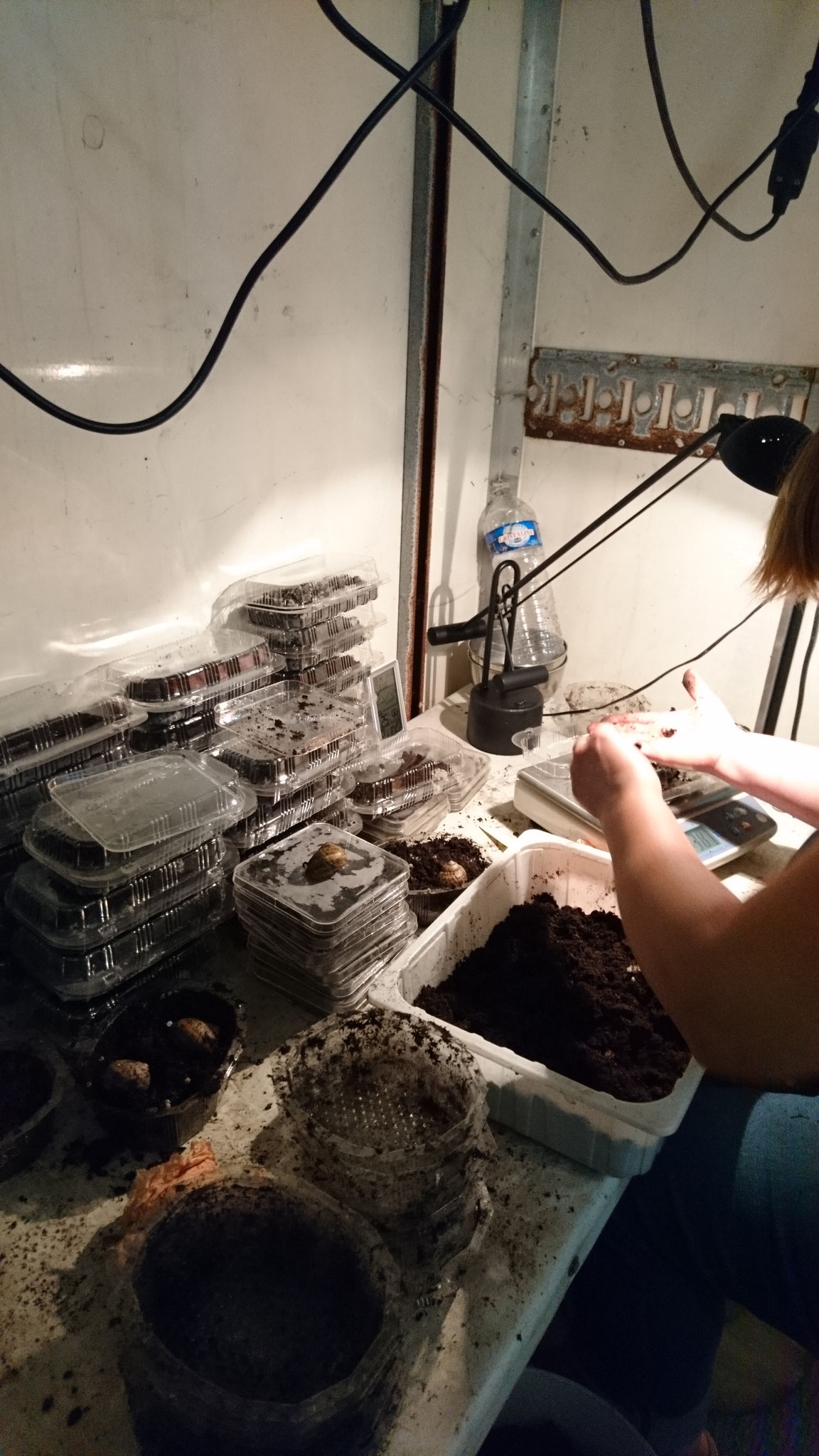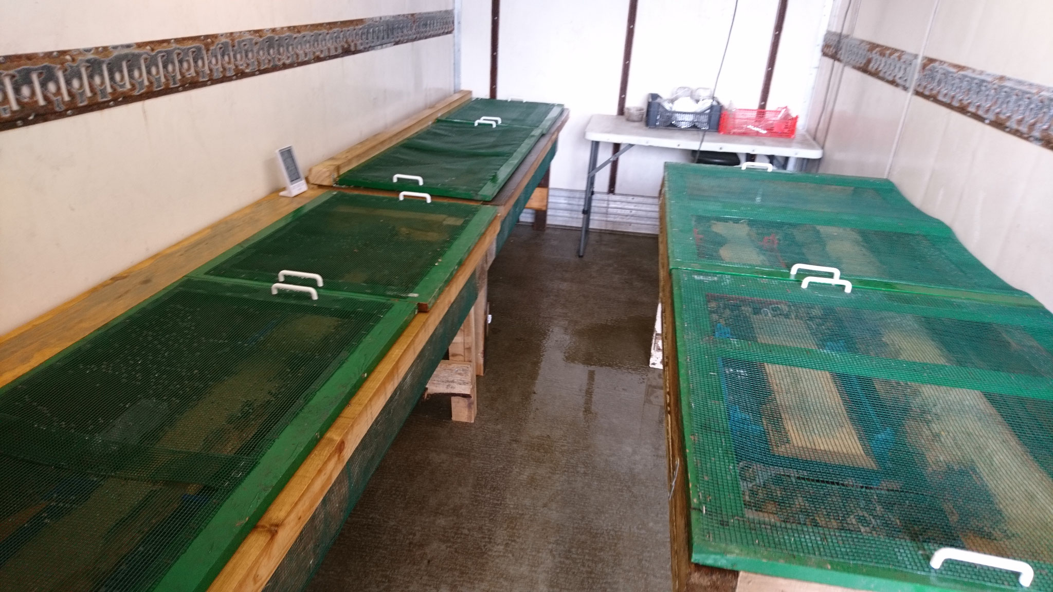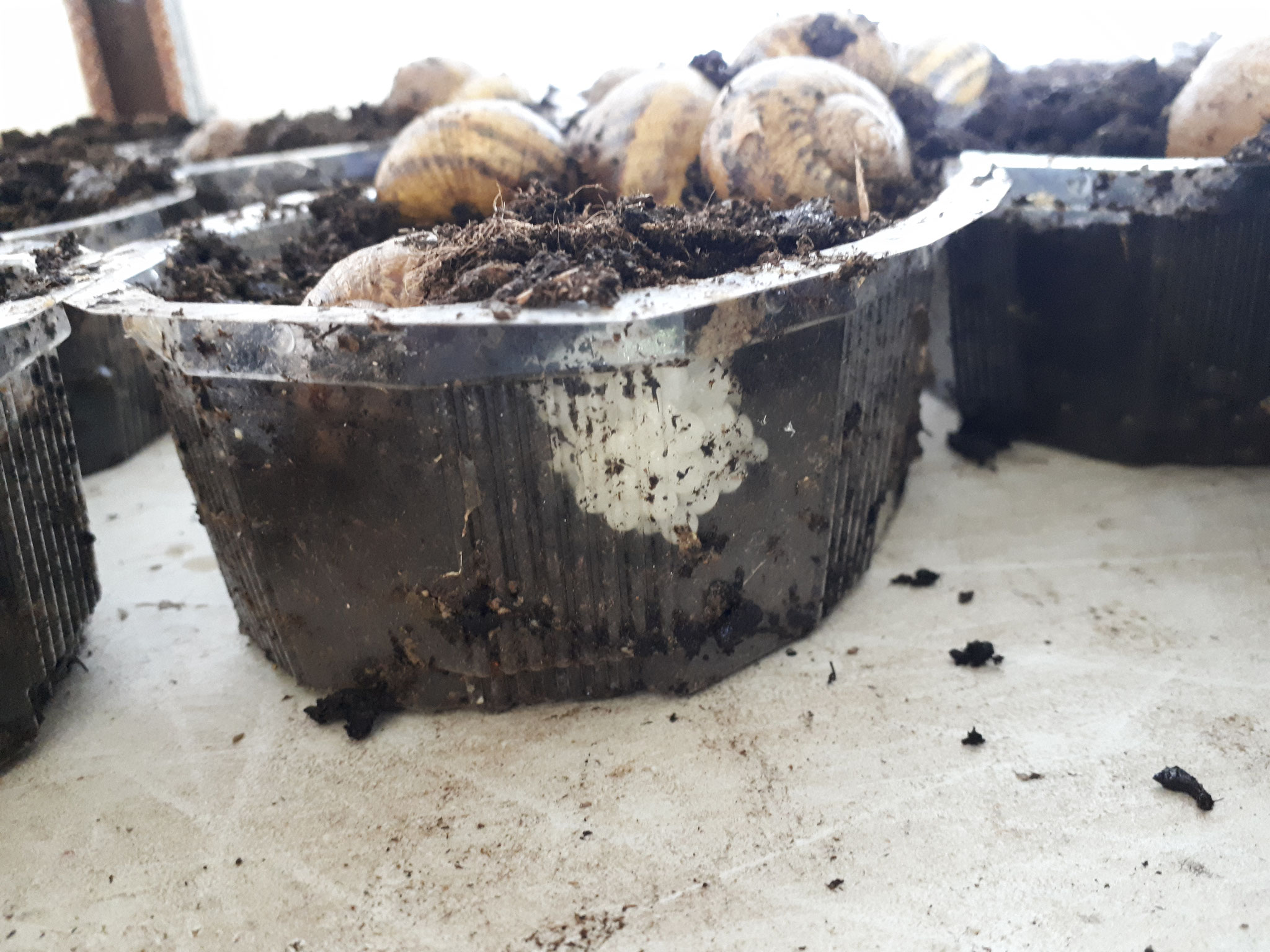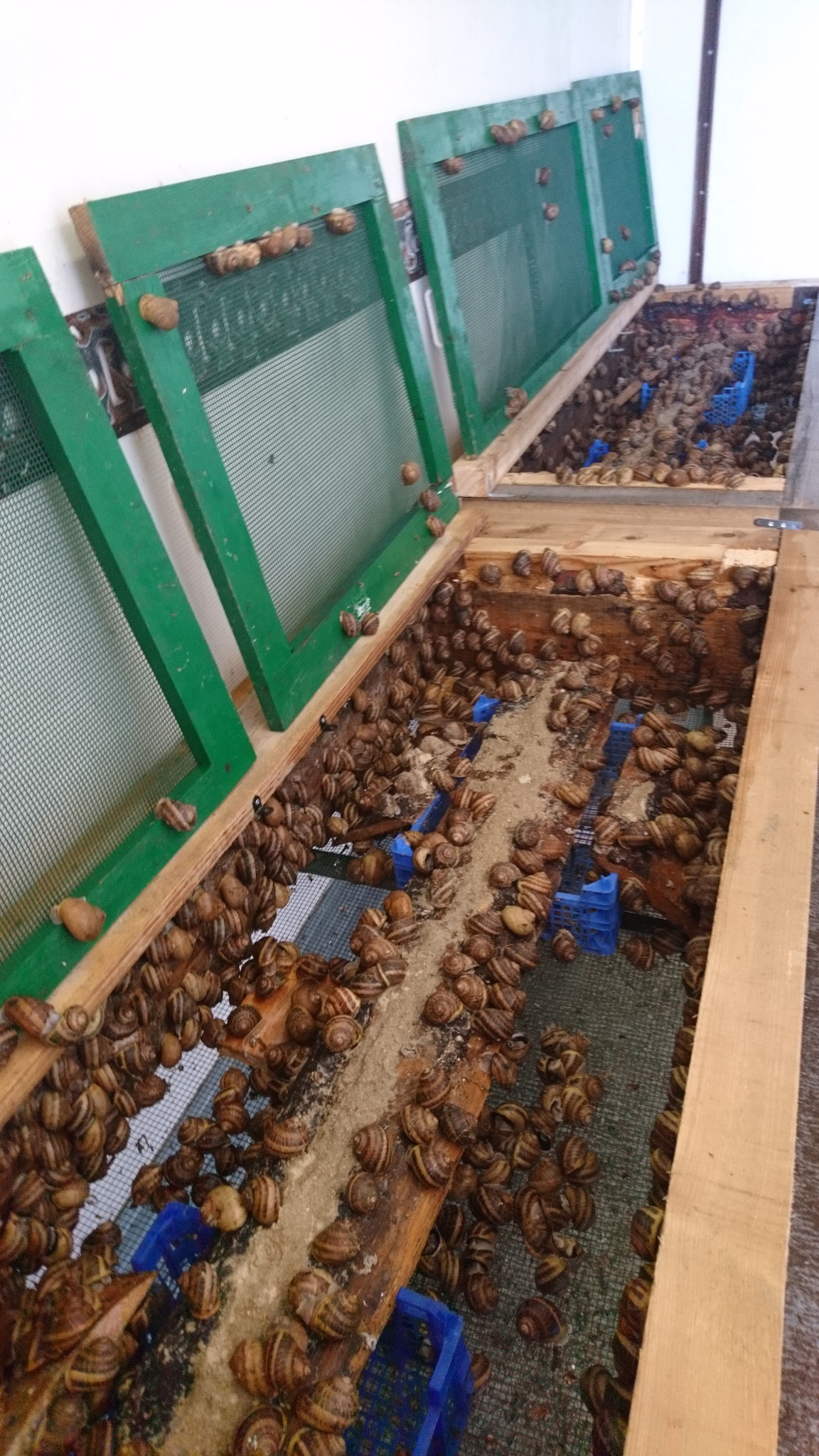 Au terme de quatre mois d'hibernation en chambre froide, les escargots reproducteurs sélectionnés lors de la précédente récolte, sont réveillés début mars. Température, hygrométrie, nourriture sont autant de paramètres à considérer afin de placer nos gastéropodes dans les meilleures conditions pour qu'ils puissent s'accoupler et pondre.