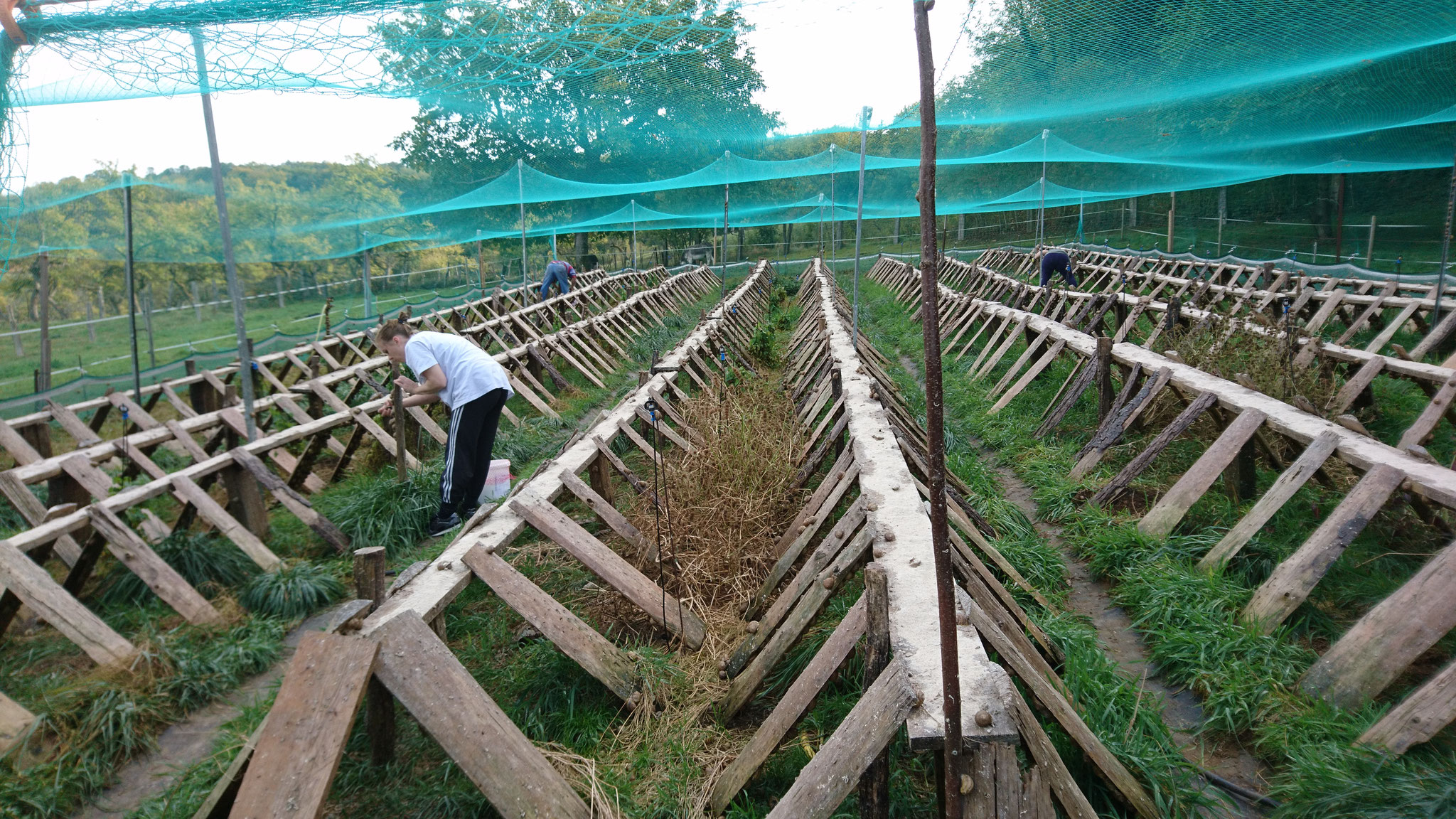 Quelques jours après la naissance, les nouveaux nés ou naissains sont lâchés dans les parcs de croissance. Dans une végétation abondante, ils ne mettent que quelques minutes pour trouver leur marque et explorer l'environnement dans lequel ils vont évoluer durant 130 jours environ, avant d'être ramassés.